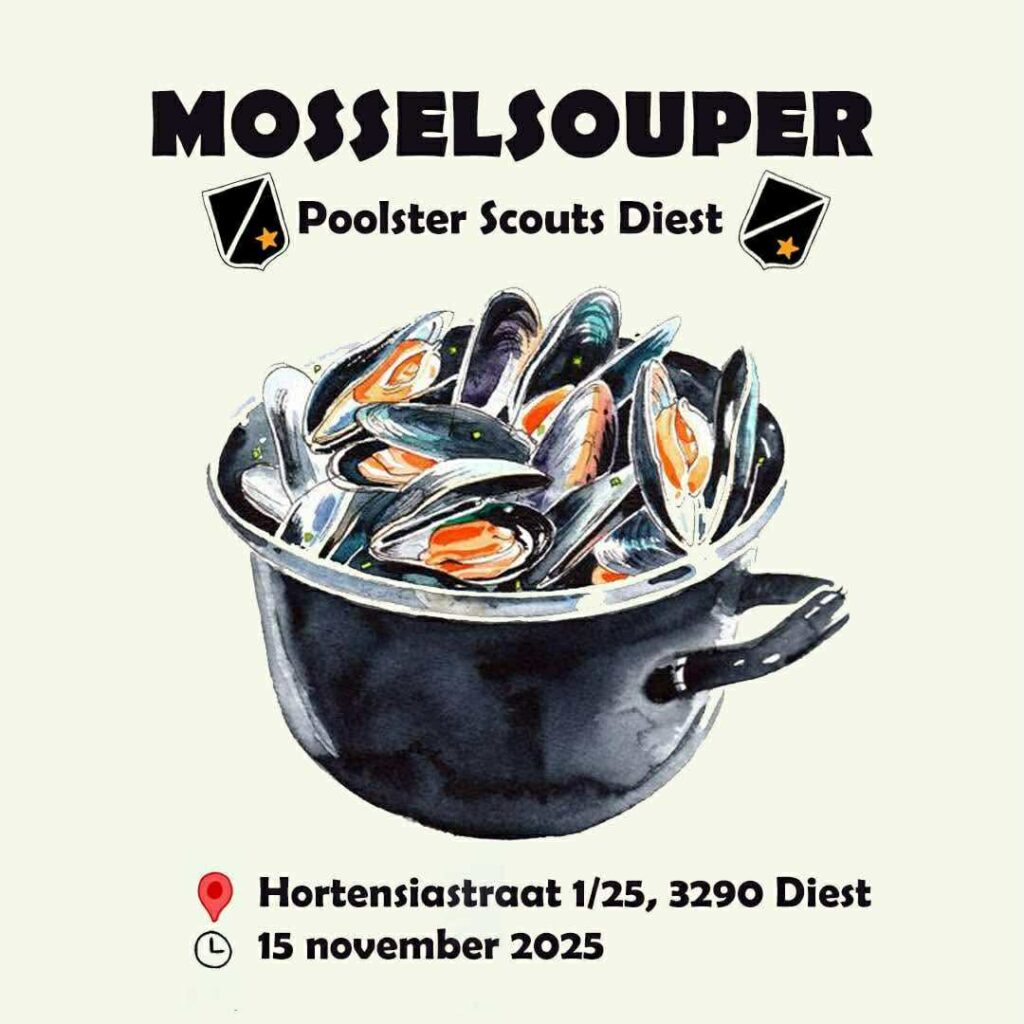 De herfstbladeren vallen van de bomen en dat betekent maar één ding! Scouts Poolster verwelkomt u weer op de jaarlijkse Mosselsouper. Gezellig samen en lekker eten om de kas van onze scoutsgroep te spijzen. Veel aangenamer kan het nuttige niet worden…